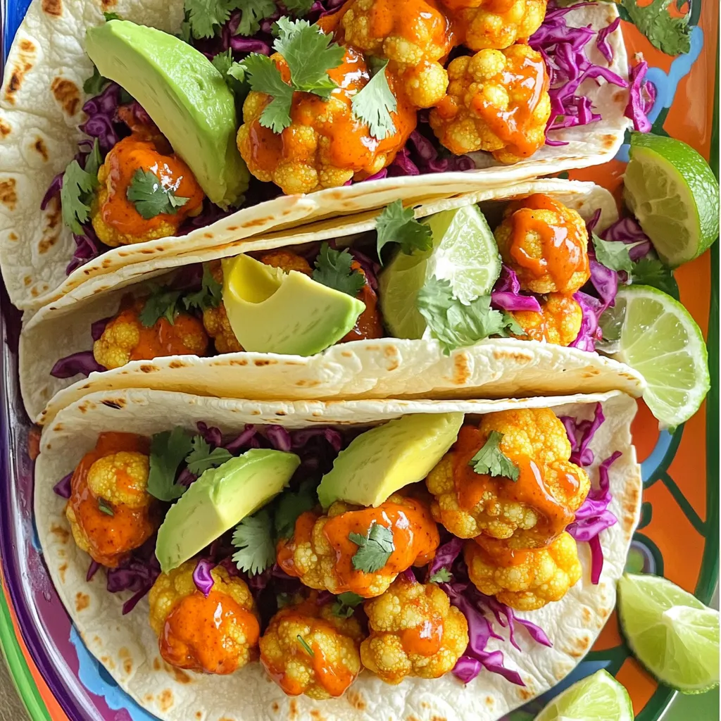 To make these tacos, the star of the show is the cauliflower. You want nice, fresh florets. The batter blends flour and milk, giving the cauliflower a crunchy coat. Seasonings like garlic powder and paprika boost the flavor. If you like it spicy, add cayenne pepper. Don’t forget salt and pepper for taste. Finally, toss the cooked cauliflower in buffalo sauce for that tangy kick.