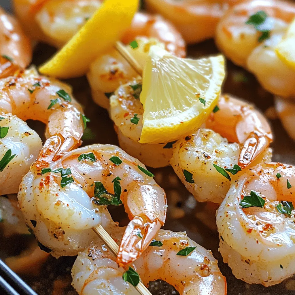 Garnish your shrimp skewers with fresh parsley. A squeeze of lemon juice adds brightness. Serve them with rice or a fresh salad. You can also pair them with a dipping sauce. Enjoy your delicious meal with friends or family!