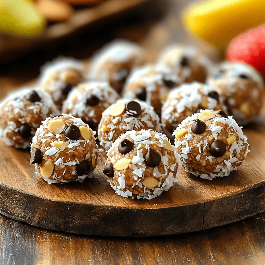 These energy balls pair well with drinks like almond milk or coconut water. You can also enjoy them with fresh fruit like bananas or apples. For a fun snack platter, arrange the energy balls on a wooden board and sprinkle shredded coconut on top. This way, they look great and taste even better.