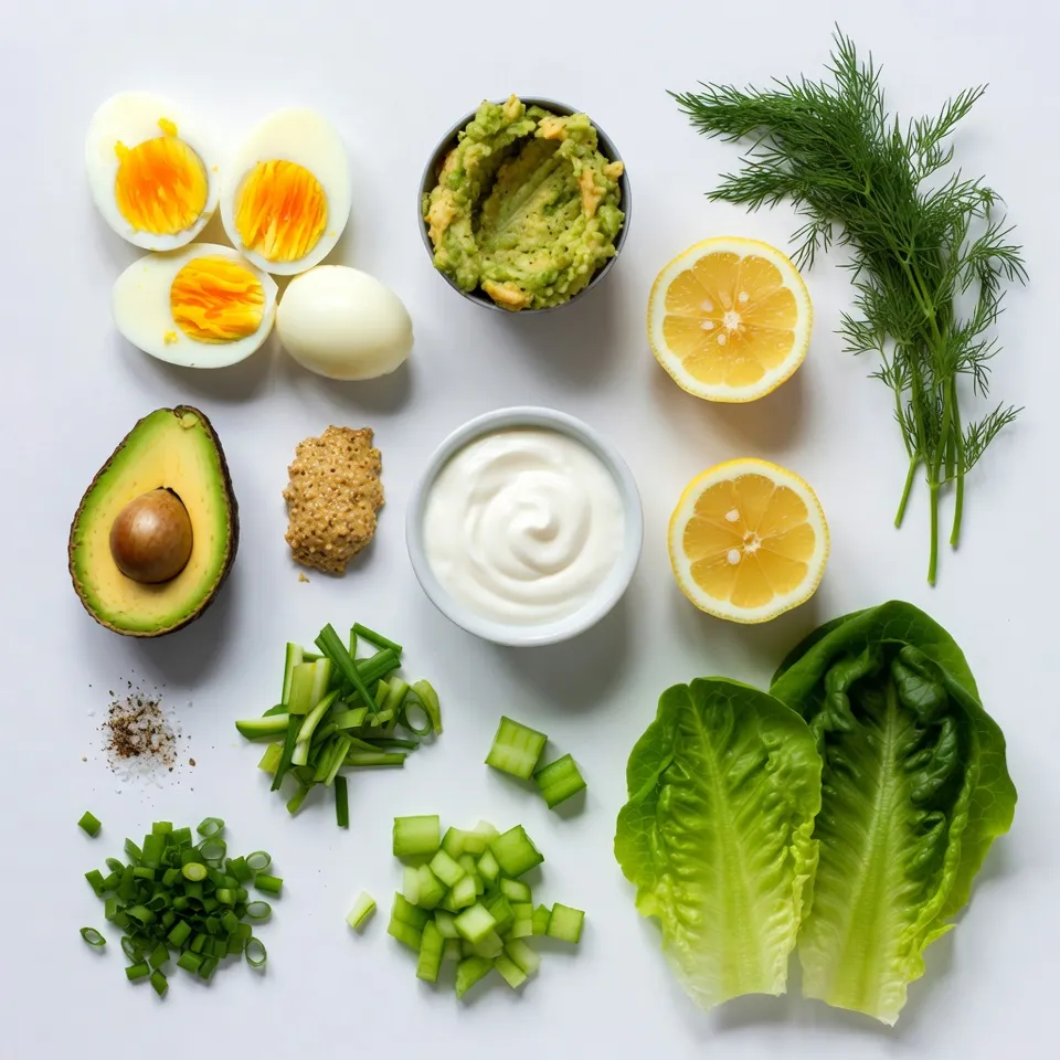 To make the avocado egg salad, you need these key ingredients: - 4 hard-boiled eggs, peeled and chopped - 1 ripe avocado, mashed - 2 tablespoons Greek yogurt (or mayonnaise for a richer taste) - 1 tablespoon Dijon mustard - 1 tablespoon fresh lemon juice - 2 green onions, chopped - 1 small celery stalk, finely diced - Salt and pepper to taste - 8 large lettuce leaves (such as romaine or butter lettuce) These ingredients come together to create a creamy and tasty salad. The hard-boiled eggs bring protein, while the avocado adds healthy fats. Greek yogurt keeps it lighter than mayonnaise but still creamy. Feel free to mix things up with these optional ingredients: - Fresh herbs like dill or parsley - Chopped bell peppers for crunch - Diced pickles for a tangy kick Adding these ingredients allows you to make the dish your own. Fresh herbs can brighten the flavor, while bell peppers add a nice crunch. For added flair, consider these toppings: - Sliced cherry tomatoes for color - Extra herbs for freshness - A sprinkle of paprika for spice These garnishes not only make the dish look appealing but also enhance the taste. A pop of color makes your meal more fun and inviting. Enjoy your Avocado Egg Salad Lettuce Wraps! {{ingredient_image_1}} To start, gather your ingredients. You will need four hard-boiled eggs, one ripe avocado, two tablespoons of Greek yogurt, one tablespoon of Dijon mustard, and one tablespoon of fresh lemon juice. Chop the hard-boiled eggs and mash the avocado in a large mixing bowl. Next, add the Greek yogurt or mayonnaise and the Dijon mustard. Pour in the lemon juice and mix everything well. This step creates a creamy base. Then, fold in the chopped green onions and finely diced celery. These add great crunch and flavor. Finally, season with salt and pepper to taste. Adjust as needed based on your preference. Now, take your large lettuce leaves. Romaine or butter lettuce works best. Spoon a generous amount of your avocado egg salad into the center of each leaf. Don’t be shy; fill it up! If you want, sprinkle fresh herbs like dill or parsley on top. This adds a nice touch and extra flavor. Next, fold the sides of the lettuce leaf over the filling. Roll it up gently to create a wrap. This makes it easy to eat and fun to serve. For a lovely presentation, serve the wraps on a platter. Place extra filling on the side for guests to enjoy. This allows everyone to customize their wraps. You can also garnish with more herbs or cherry tomato halves. This adds a pop of color and makes the dish more appealing. Remember, we eat with our eyes first! To make the best egg salad, start with fresh eggs. Boil them for about 10-12 minutes. This makes them easy to peel. Once peeled, chop them into small pieces. I like using a fork to mash the avocado right in the bowl. This saves time and adds flavor. Mix in Greek yogurt or mayonnaise for a creamier texture. Dijon mustard adds a nice zing. Don’t forget the lemon juice; it brightens the flavors. Lastly, add salt and pepper to your taste. This is your chance to make it just right! If you have leftovers, store them in an airtight container. This keeps the egg salad fresh. I recommend eating it within 2-3 days. If you notice the color changes, it’s time to toss it. Avoid leaving it out for too long. Always refrigerate your leftovers promptly. This keeps them safe to eat later. You can make this salad ahead of time! It tastes great after chilling in the fridge. Just prepare the salad and store it. I like to let the flavors blend overnight. Just remember to keep it in a sealed container. When it’s time to serve, spoon it into lettuce wraps. This makes a quick and tasty meal. Pro Tips Use Fresh Ingredients: Always opt for ripe avocados and fresh eggs to enhance the flavor and creaminess of your egg salad. Customize Your Dressing: Feel free to adjust the amount of Greek yogurt or mayonnaise based on your preferred creaminess level. Chill Before Serving: For a refreshing taste, let the egg salad sit in the refrigerator for 30 minutes before serving to allow the flavors to meld. Experiment with Herbs: Try different combinations of fresh herbs, such as cilantro or basil, to give your wraps a unique twist! {{image_2}} You can use many types of lettuce for your wraps. Romaine is sturdy and crunchy. Butter lettuce is soft and sweet. Both give a nice bite to your dish. Other options include green leaf or even cabbage. Each type adds a unique flavor and texture. You can easily swap ingredients based on your diet. For a dairy-free option, use avocado instead of Greek yogurt. If you want a vegan version, replace eggs with chickpeas. You can mash chickpeas to get a similar texture. For a low-fat option, reduce the amount of avocado or yogurt. Adding extra flavors can make your dish pop. Try mixing in spices like paprika or cumin. Fresh herbs like dill or parsley add bright notes. You could also add a dash of hot sauce if you like heat. These simple changes can elevate your avocado egg salad to new heights. To keep your avocado egg salad fresh, store it in an airtight container. This helps prevent it from drying out. You can use plastic wrap to cover the bowl if you prefer that method. Always place the container in the refrigerator right after making it. Freezing egg salad is not ideal because of the texture. When thawed, the eggs and avocado may become watery. If you want to freeze it, do so without the lettuce. Store your egg salad in a freezer-safe bag and remove as much air as possible. In the fridge, your avocado egg salad lasts about 2 to 3 days. If you freeze it, use it within 1 month for the best taste. Always check for any off smells or changes in texture before eating. Yes, you can make this salad ahead of time. It tastes great after chilling in the fridge for a few hours. Just keep it in an airtight container. This helps the flavors mix well. If you wait too long, the avocado may brown. Add lemon juice to slow this down. Prepare the salad one d