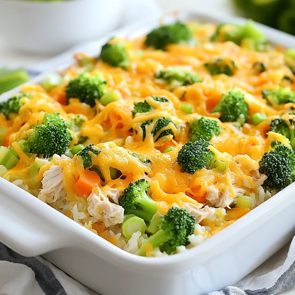 - 2 cups cooked white rice - 2 cups cooked shredded chicken - 1 cup broccoli florets, steamed - 1 cup carrots, diced - 1 cup celery, diced - 1 small onion, finely chopped - 2 cloves garlic, minced - 2 cups chicken broth - 1 cup cream of mushroom soup - 1 teaspoon dried thyme - 1 teaspoon paprika - 1 cup shredded cheddar cheese - Salt and pepper to taste - 2 tablespoons olive oil - Fresh parsley for garnish (optional) I love using these simple ingredients for my chicken and rice casserole. The rice serves as a great base, soaking up all the flavors. Cooked, shredded chicken adds protein and makes it filling. I often use rotisserie chicken for ease. Fresh vegetables like broccoli, carrots, and celery provide vitamins and texture. Chicken broth and cream of mushroom soup create a rich, creamy sauce. Dried thyme and paprika add depth to the flavor. Finally, shredded cheddar cheese melts beautifully on top, making it extra delicious. Don't forget the salt and pepper to enhance everything! This dish is not just easy to prepare, but it also brings warmth and comfort to every meal. {{ingredient_image_1}} - Preheat the oven to 350°F (175°C). This step is key for even cooking. - In a large skillet, heat 2 tablespoons of olive oil over medium heat. - Add 1 small onion, finely chopped, and 2 cloves of minced garlic. Sauté these for about 3 minutes until soft. - Next, stir in 1 cup of diced carrots and 1 cup of diced celery. Cook for another 5 minutes until they are tender. - In a large mixing bowl, combine 2 cups of cooked white rice, 2 cups of cooked, shredded chicken, and 1 cup of steamed broccoli florets. - Add the cooked vegetable mixture, 2 cups of chicken broth, and 1 cup of cream of mushroom soup. - Season with 1 teaspoon of dried thyme, 1 teaspoon of paprika, salt, and pepper to taste. - Mix everything together until well combined. This will create a flavorful base for the casserole. - Transfer this mixture into a greased 9x13 inch baking dish. Spread it out evenly for balanced baking. - Top the casserole with 1 cup of shredded cheddar cheese. This adds a nice creamy layer. - Cover the dish with aluminum foil to keep moisture in while baking. - Bake in the preheated oven for 30 minutes. This helps the flavors meld beautifully. - After 30 minutes, remove the foil. Bake for an additional 15-20 minutes until the cheese is bubbly and golden. - Let the casserole sit for 5 minutes after baking. Garnish with fresh parsley if you like. Enjoy your comforting meal! - Choosing the best chicken options: I love using rotisserie chicken. It’s tender and full of flavor. You can also use leftover chicken from another meal. Just make sure it’s cooked through. If you cook the chicken yourself, aim for thighs or breasts that are juicy and well-seasoned. - Ensuring rice and chicken are properly cooked: Use cooked white rice for this dish. It saves time and adds a great texture. If you prefer, you can use brown rice, but it may need more cooking time. Always check that the chicken is tender and the rice is fluffy. Mix both well with the soup and broth to keep them moist. - Pairing with sides: This casserole is filling on its own. But it works great with a fresh salad or steamed veggies. Try serving it with garlic bread for a tasty twist. A light side dish balances the richness of the casserole well. - Presentation tips: For a beautiful presentation, sprinkle fresh parsley on top just before serving. You can also use a colorful plate to make the dish pop. Cut the casserole into squares for even servings. This makes it easy for guests to enjoy. Pro Tips Use Rotisserie Chicken: For a quicker prep time, using rotisserie chicken saves you from cooking and shredding the chicken yourself. Customize Your Veggies: Feel free to swap in your favorite vegetables, such as bell peppers or green beans, for added flavor and nutrition. Make It Creamy: For a creamier texture, add an extra half cup of cream of mushroom soup or a splash of heavy cream. Let It Rest: Allow the casserole to sit for a few minutes after baking; this helps the flavors meld and makes it easier to serve. {{image_2}} You can easily switch up the veggies in this dish. Try using green beans, peas, or corn. These options add bright colors and different tastes. Each veggie brings its own charm, making your casserole unique. If you're not a fan of cream of mushroom soup, don't worry. You can use cream of chicken soup or even a homemade white sauce. This change will keep the dish creamy and tasty without the mushroom flavor. Cheese is another area for fun. While I love cheddar, you can try mozzarella or pepper jack. Each cheese melts nicely and adds its own flavor twist. Feel free to mix cheeses for a richer taste. For gluten-free options, use gluten-free cream of mushroom soup. You can also check that your chicken broth is gluten-free. This way, everyone can enjoy this dish without worry. If you want to make it healthier, consider using brown rice instead of white rice. Brown rice adds fiber and nutrients. You can also cut back on cheese or use low-fat cheese. This change keeps the taste while lowering calories. To keep your chicken and rice casserole fresh, follow these tips: - Refrigerating leftovers: Place the casserole in an airtight container. It can stay in the fridge for up to three days. Make sure to let it cool before sealing. - Freezing tips for long-term storage: If you want to store it longer, freeze the casserole. Wrap it tightly in plastic wrap and then in aluminum foil. It can last up to three months in the freezer. Label the outside with the date to keep track. To enjoy your leftovers, reheating is key. Here’s how: - Best methods to reheat without compromising quality: The oven is best. Preheat it to 350°F (175°C). Remove the casserole from the fridge or freezer. If frozen, let it thaw overnight in the fridge. Cover it with foil to keep it moist. Bake for 20-30 minutes until heated through. You can also use a microwave. Heat in short b