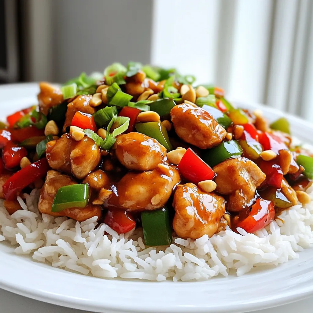 For a great presentation, serve your Kung Pao Chicken over a bed of steamed jasmine rice. Top it with extra peanuts and sliced green onions for color. This makes the dish look appetizing and inviting. You can also serve it with a side of steamed broccoli or a fresh salad for a complete meal.