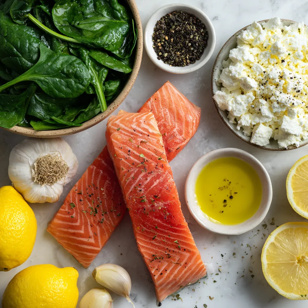 The main ingredients in this recipe create a great base. Salmon fillets are rich in flavor and healthy fats. Fresh spinach adds a vibrant color and nutrients. Cream cheese makes the filling creamy while feta adds a tangy bite. Together, they turn a simple dish into a gourmet meal.