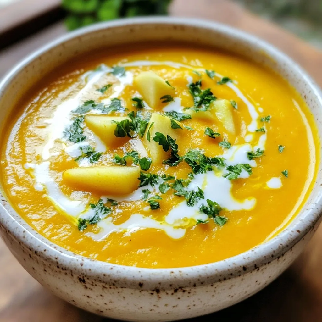 A delightful and creamy soup made with butternut squash and apples, perfect for fall.
