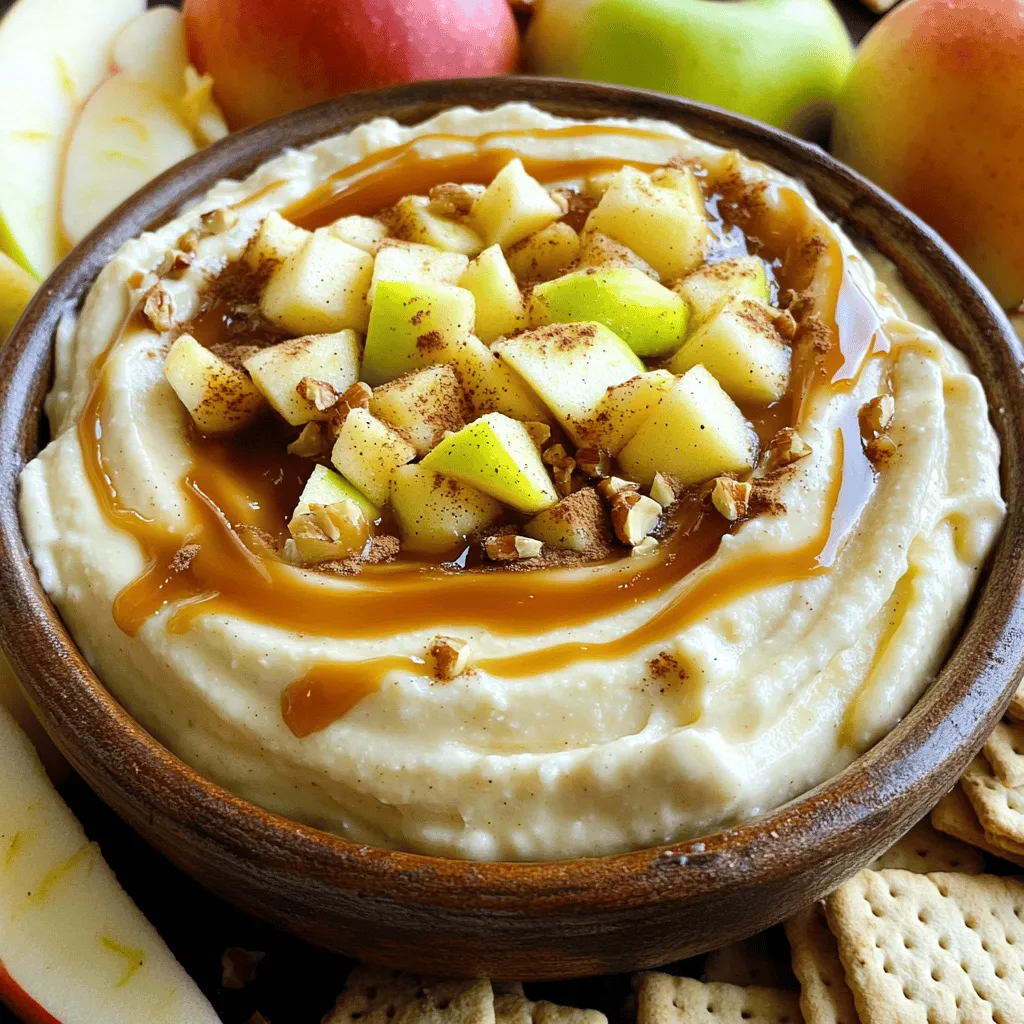 A hint of spice helps, so add 1/2 tsp of cinnamon. If you want extra crunch, 1/4 cup of chopped nuts is a great option. Walnuts or pecans work well here. Finally, have sliced apples or graham crackers ready for dipping. This combination will make your dip a hit!