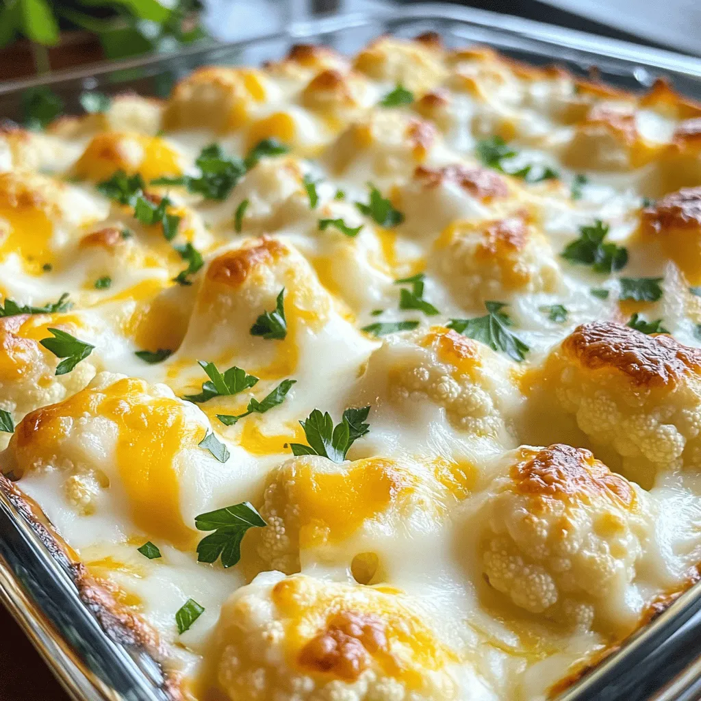 Cauliflower is the star of this dish. It acts as a great base and soaks up all that cheesy goodness. I love using sharp cheddar for its bold taste. It pairs well with the rich, nutty flavor of Parmesan.