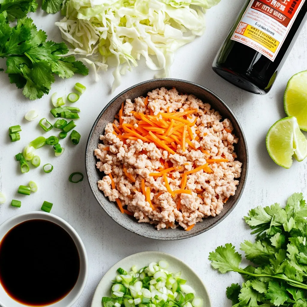 These main ingredients form the base of your chicken wonton tacos. Ground chicken is lean and easy to cook. Wonton wrappers provide a crispy shell that holds all the flavors inside. Fresh vegetables, like cabbage and carrots, add crunch and color. The green onions give a nice, mild onion taste.