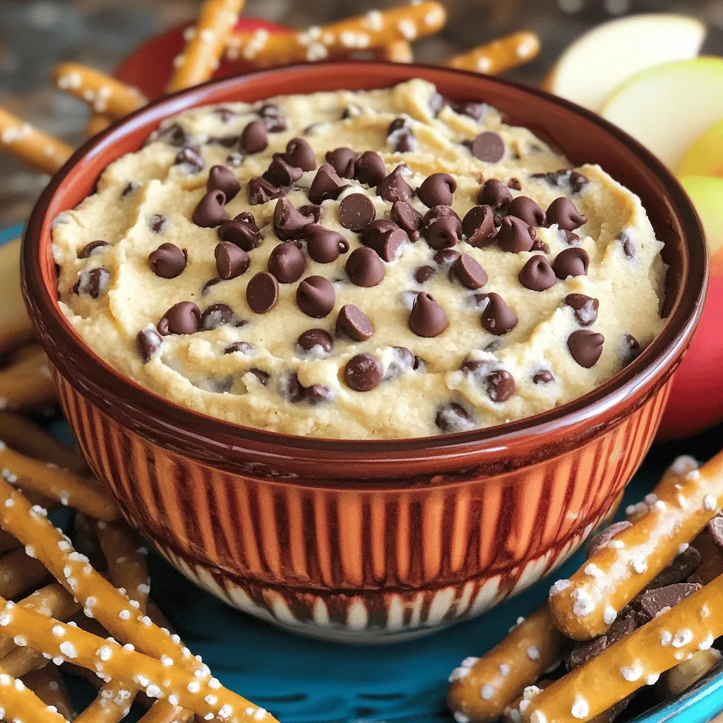 To make the delightful chocolate chip cookie dough dip, you need simple ingredients. Here’s what you’ll need: - 1 cup all-purpose flour - 1 cup brown sugar, packed - ½ cup granulated sugar - 1 cup unsalted butter, softened - 2 teaspoons vanilla extract - 1 cup mini chocolate chips - 1 tablespoon milk (or more for desired consistency) - A pinch of salt Each ingredient plays a key role in creating the perfect dip. The all-purpose flour gives it a rich, dough-like texture. Brown sugar adds that warm, sweet flavor we love. Granulated sugar enhances the sweetness without being overpowering. Unsalted butter provides creaminess and a smooth mouthfeel. Vanilla extract brings depth with its warm notes. Mini chocolate chips are essential for those little bursts of chocolate in every bite. Finally, milk helps adjust the dip's creaminess. A pinch of salt balances all the flavors perfectly. With these ingredients, you’ll create a dip that tastes just like cookie dough. Enjoy! 1. Creaming butter and sugars: Start by taking softened butter and placing it in a mixing bowl. Add brown sugar and granulated sugar. Mix them together until the mixture becomes light and fluffy. This step helps to create a nice texture in your dip. 2. Incorporating vanilla extract: Next, pour in the vanilla extract. Mix again until it blends well with the butter and sugars. This adds a rich flavor that makes your dip taste amazing. 3. Adding the flour and salt: Gradually add the all-purpose flour and a pinch of salt to the bowl. Mix until just combined. Be careful not to overmix, as this can make your dip too dense. You want it to stay light and creamy. 1. Stirring in chocolate chips: Now, stir in the mini chocolate chips. Make sure to distribute them evenly throughout the dip. This adds sweetness and a delightful crunch. 2. Adjusting consistency with milk: If your dip feels too thick, add milk. Start with one tablespoon at a time, mixing in between. Keep adding until you reach your desired consistency. You want it to be scoopable but not runny. 1. Transferring to a serving bowl: Once mixed, transfer the cookie dough dip to a colorful serving bowl. This makes it look even more inviting. 2. Chilling time and tips for serving: For the best taste, chill the dip in the fridge for about 30 minutes. This helps it set slightly. When serving, you can top it with extra chocolate chips for a nice touch. Pair it with fun dippables like pretzel sticks, graham crackers, or apple slices for a fun treat! To make your dip just right, mix well. Start by creaming the butter and sugars until light. This step adds air and makes your dip fluffy. When adding flour and salt, mix slowly to avoid lumps. If your dip is too sweet, add a pinch of salt. This balances the taste. If it feels too thick, add milk, one tablespoon at a time. Mix until you reach your desired texture. Choose a colorful bowl to serve your dip. A bright bowl makes the dip look even better. For garnish, sprinkle mini chocolate chips on top. This adds a fun look and extra chocolate flavor. You can also add a few chocolate shavings or a drizzle of melted chocolate for flair. Pick dippables with different textures and flavors. Pretzel sticks add a nice crunch. Graham crackers are sweet and pair well. Apple slices give a fresh bite. You can even try vanilla wafers or marshmallows. All these options make your cookie dough dip even more fun to enjoy! {{image_2}} You can change the flavor of your dip easily. One fun choice is peanut butter chocolate chip cookie dough dip. Just swap some butter with peanut butter. This adds a rich, nutty taste. You still get the sweet chocolate goodness. If you need a nut-free option, try using alternative flours. Almond flour or oat flour works well. These flours give a different taste but still keep the dip creamy. Want to add more to your dip? You can mix in nuts or dried fruits. Chopped walnuts or pecans add crunch. Dried cranberries or raisins bring a sweet chewiness. These add fun flavors and textures. You can also experiment with different types of chocolate. Use dark chocolate chips for a richer taste. Or try white chocolate chips for a sweeter dip. Each type gives your dip a new twist. Make your dip festive for the holidays. Try a pumpkin spice version for fall. Just mix in some pumpkin puree and spices like cinnamon. It’s perfect for autumn gatherings. For winter holidays, use festive toppings. Add colorful sprinkles or mini marshmallows. These add a fun touch to your dip. You can match colors to the season for extra cheer. To keep your cookie dough dip fresh, start by placing it in an airtight container. You can store it in the fridge for up to five days. Just make sure it’s well sealed to avoid any odors from other foods. If you want to save it for longer, you can freeze it. To freeze, scoop the dip into a freezer-safe container and leave some space at the top. The dip will last for up to three months in the freezer. When you're ready to enjoy your frozen dip, take it out of the freezer. Let it sit in the fridge overnight to thaw. If you're in a hurry, you can leave it at room temperature for about an hour. After thawing, stir the dip gently to restore its creamy texture. If the dip feels too thick, add a splash of milk to bring it back to life. To keep your dip looking great, avoid browning by storing it properly. Use fresh ingredients and keep it chilled. Also, if you want to stop the chocolate chips from melting, add them right before serving. This way, they stay firm and look pretty on top of your dip. Enjoy this sweet treat while it’s fresh for the best taste! You can use several gluten-free alternatives for this dip. Almond flour works great. It gives a nice texture and flavor. Another option is oat flour. It adds a mild taste and blends well. Other possible substitutes include coconut flour. Keep in mind, you will need less of it. If you use coconut flour, add a little more milk to adjust the dip's texture. Chocolate Chip Cook