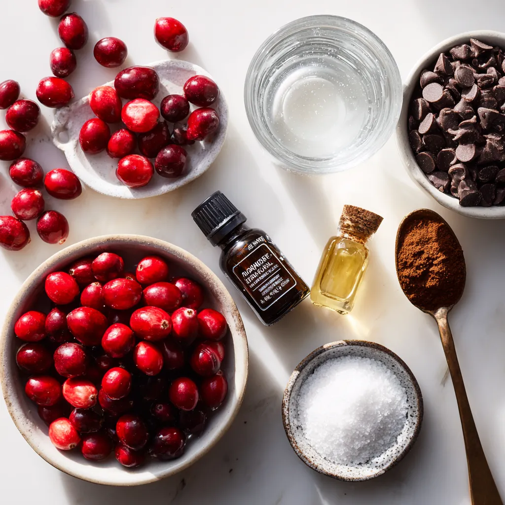 To create chocolate-dipped cranberry sauce, gather these main ingredients. Fresh or frozen cranberries provide a bright, tart flavor. Sugar and water help balance the tartness. Vanilla extract and cinnamon add warmth and depth. Dark chocolate chips bring richness, while coconut oil gives the chocolate a smooth texture.