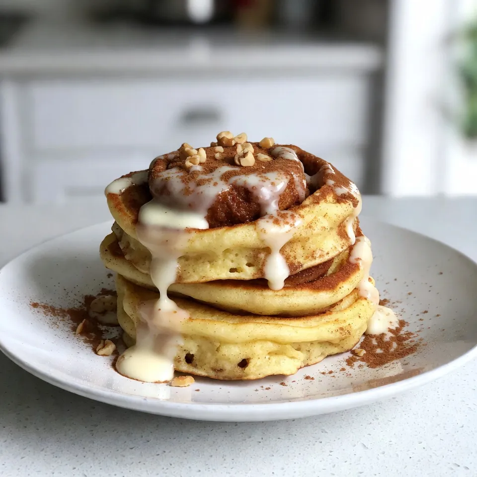 - Fun Presentation: The swirling cinnamon filling and creamy frosting make these pancakes visually appealing and a hit at the breakfast table.