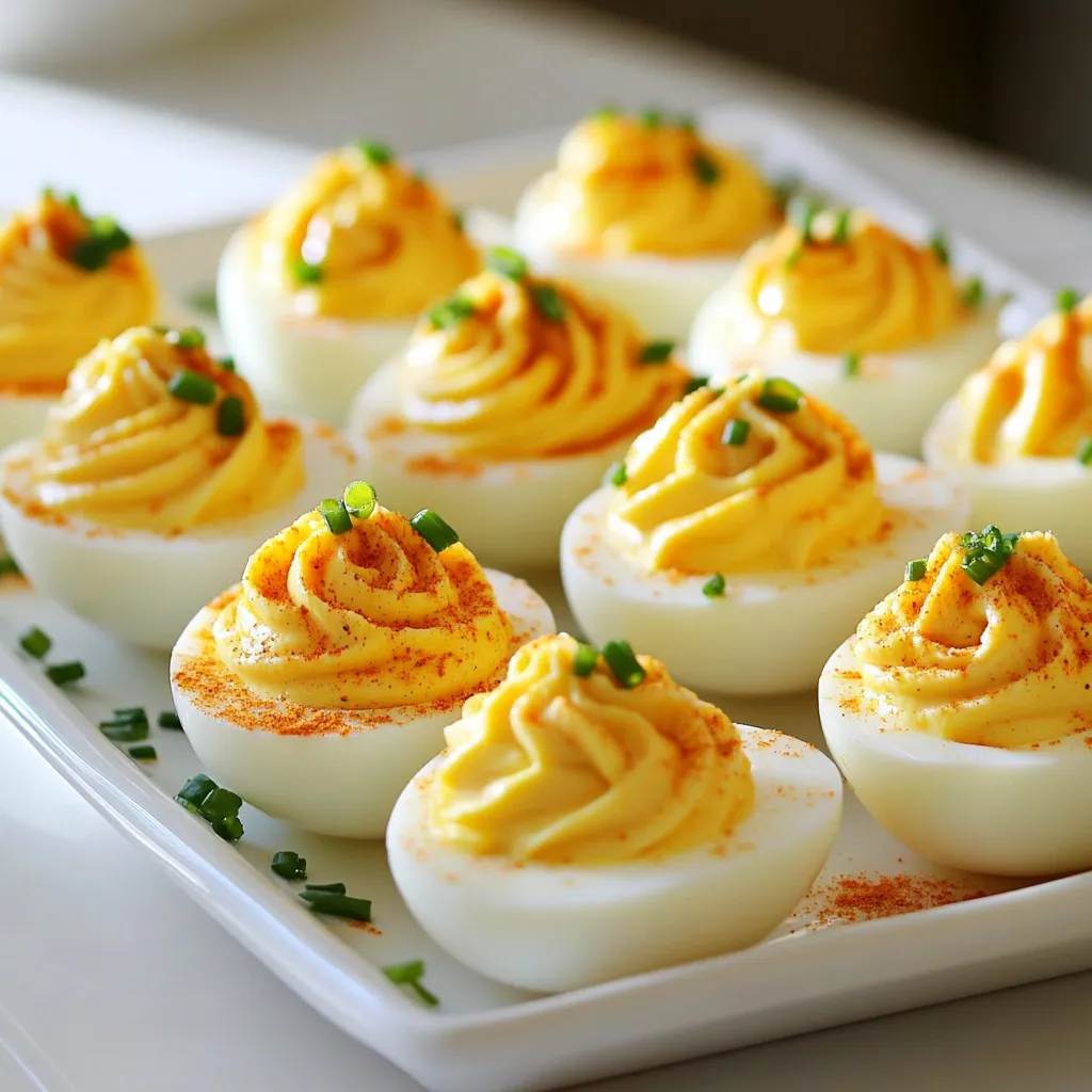 A classic appetizer featuring creamy, seasoned yolk filling in halved egg whites.