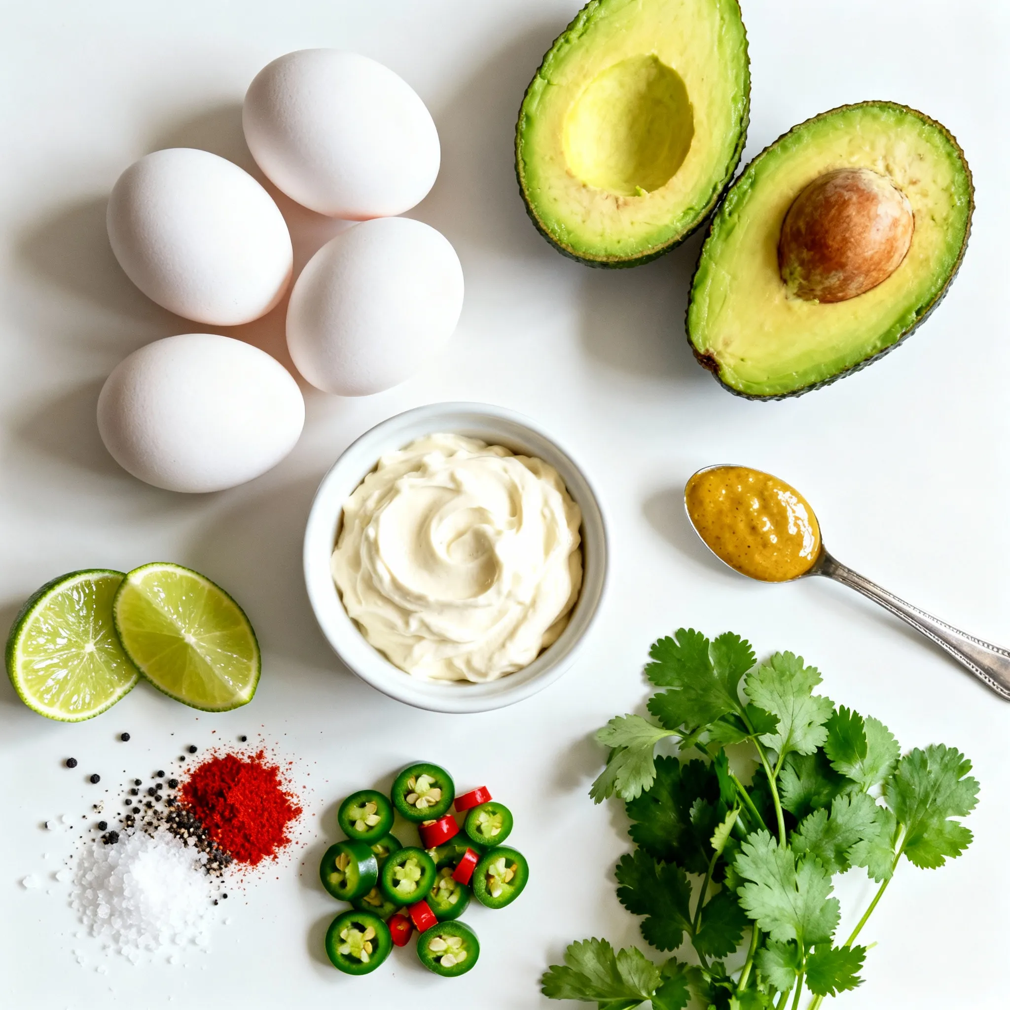 A zesty twist on classic deviled eggs with creamy avocado and a kick from jalapeño.