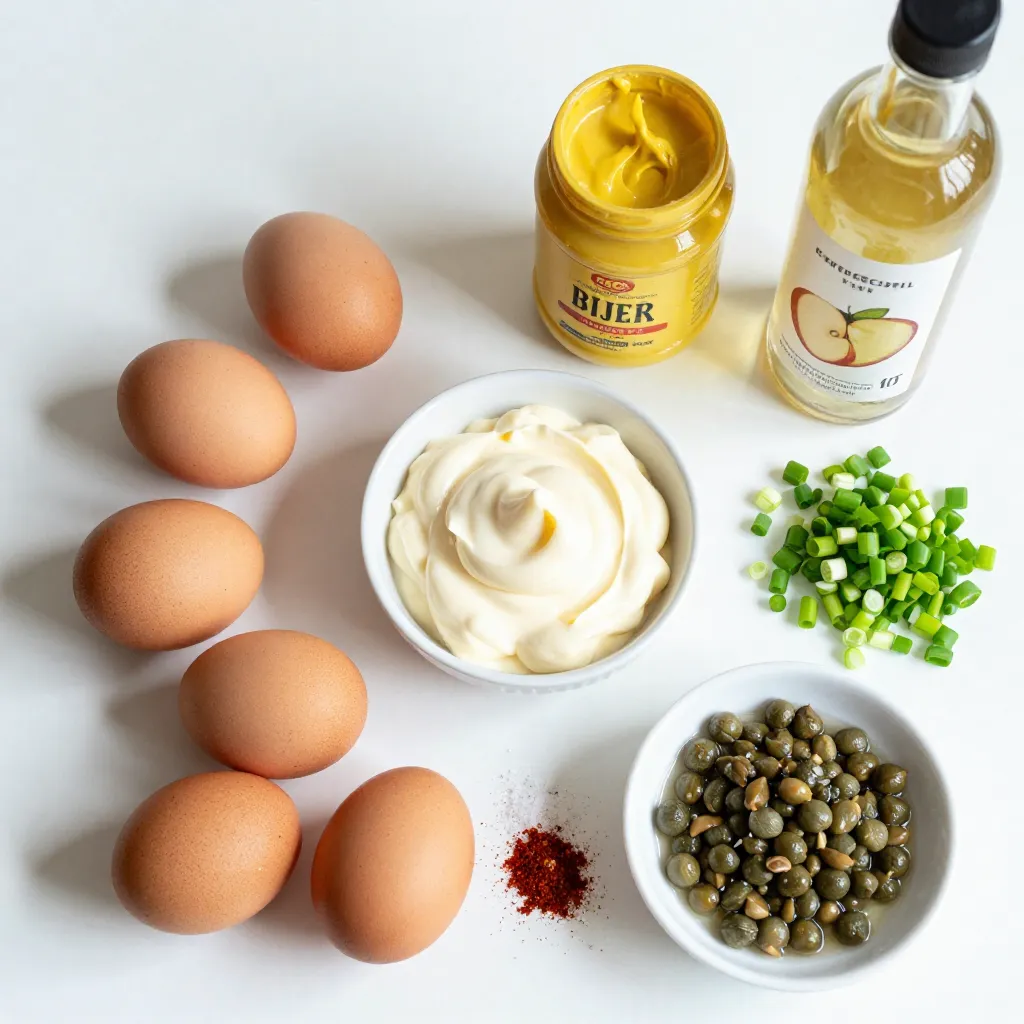 For garnishes, chop two green onions finely. They add a fresh crunch. If you want more flavor, mince one teaspoon of rinsed capers. They add a zesty surprise to your deviled eggs.