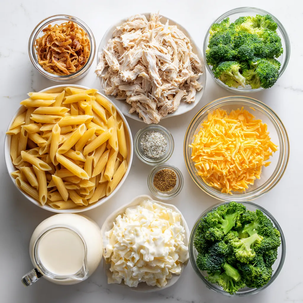 For my Crack Chicken Penne Bake, I use simple ingredients that pack a punch. First, I start with 12 ounces of penne pasta. This pasta shape holds onto the creamy sauce well. Next, I add 2 cups of cooked chicken. I love using shredded chicken for its tender texture.