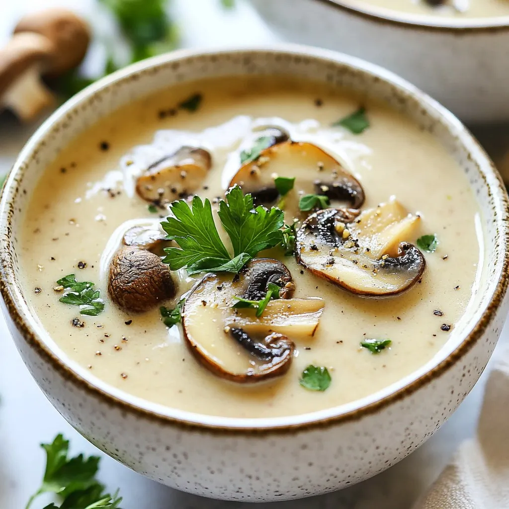 A rich and creamy soup made with fresh mushrooms, perfect for a cozy meal.