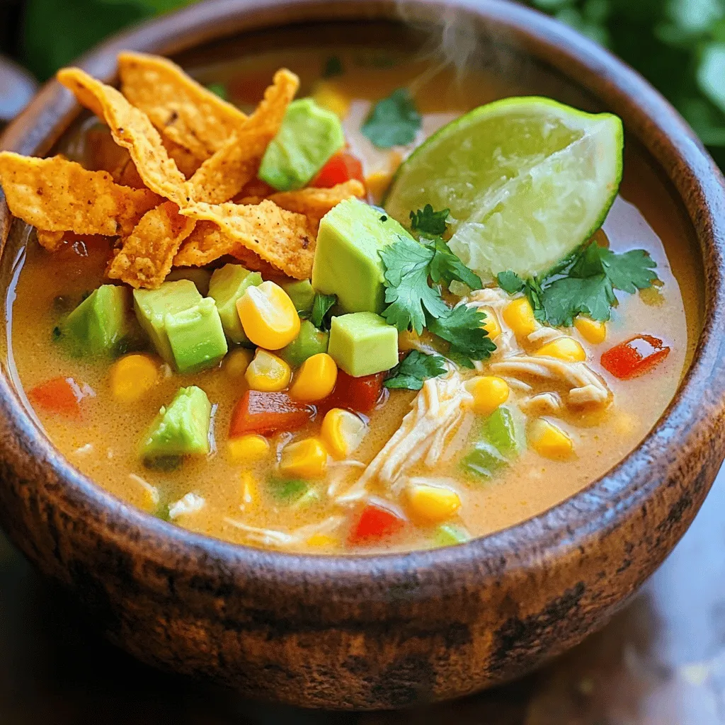 Toppings bring fun and flavor to your soup. Try crispy tortilla strips for crunch. Fresh cilantro adds brightness. Diced avocado gives creaminess and richness. You might also add cheese or sour cream for a tangy touch. Lime wedges on the side add a fresh zing. Mix and match toppings based on your mood!