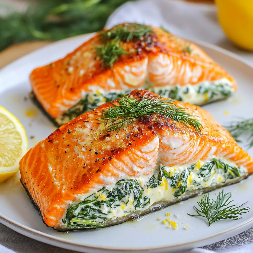 - Delicious Flavor Combination: The creamy spinach filling perfectly complements the rich flavors of the salmon, creating a mouthwatering dish.