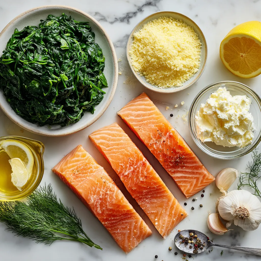 When making creamy spinach stuffed salmon, you need a few key ingredients. Each one adds to the flavor and texture of this dish. Here’s what you’ll need: