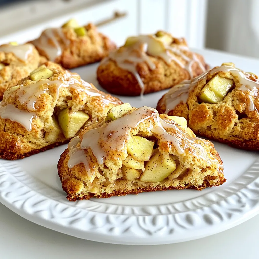 Gather these ingredients to achieve that perfect bakery-style scone. The dry ingredients form the base while the wet ones bring moisture and flavor. Diced apples add a fresh crunch, and the glaze ties it all together with sweetness. Using cold butter helps create a flaky texture, which is key. Each element plays a vital role in making these scones delightful.