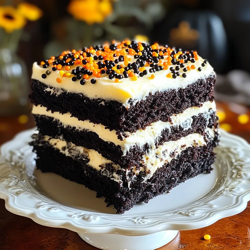 A rich and spooky black velvet cake perfect for Halloween celebrations.