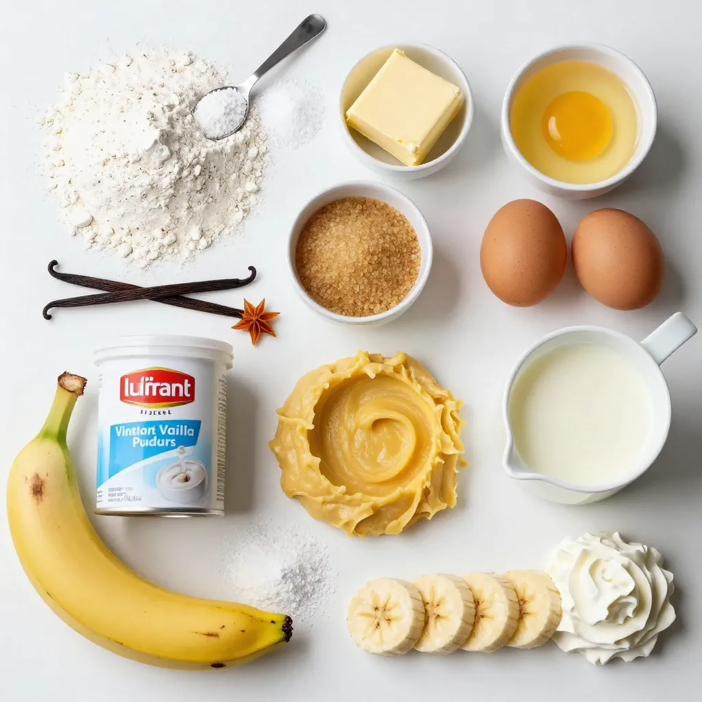 Here are the key ingredients you will need for your Banana Cream Pie Cupcakes. Each one adds a special touch to this tasty treat.