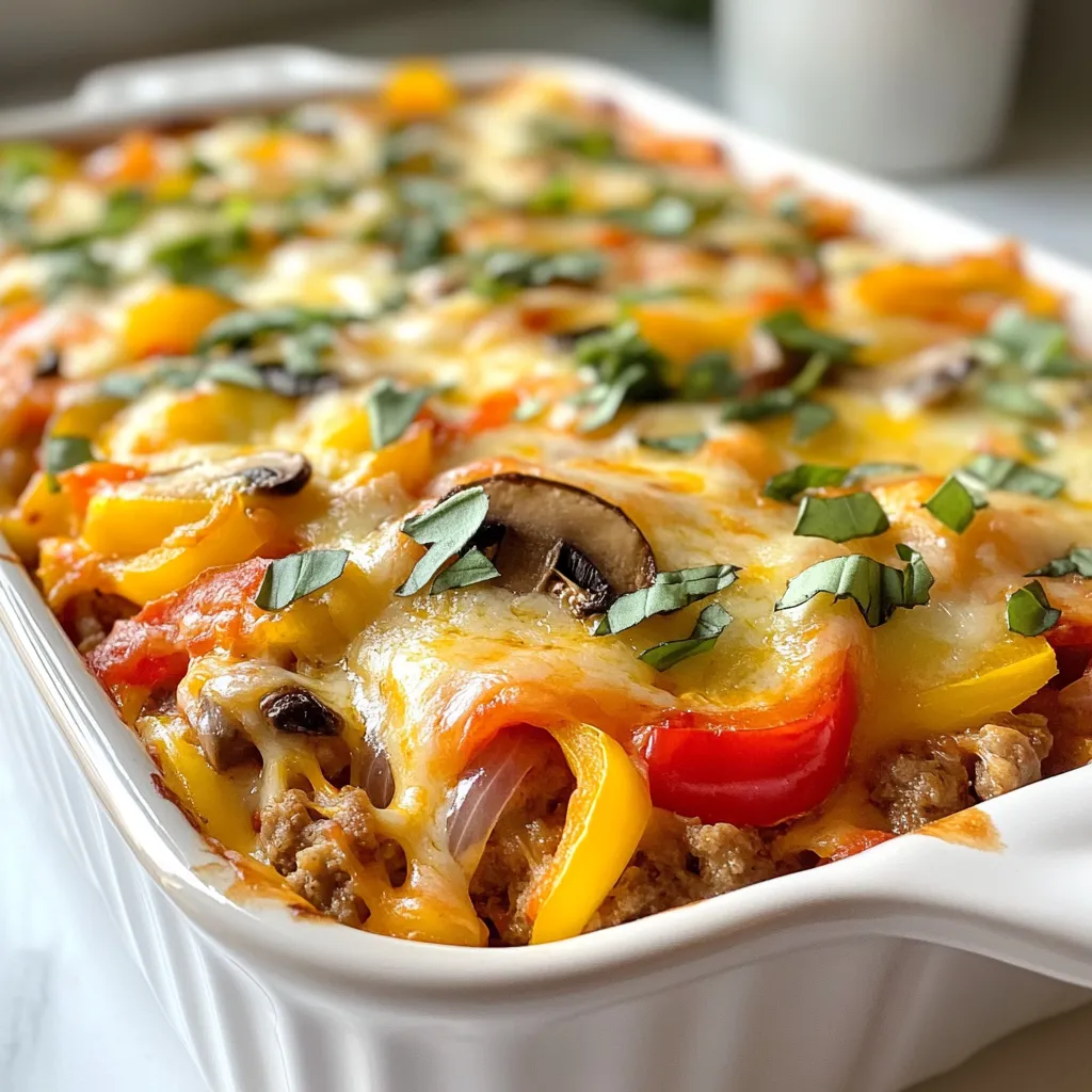 You can easily make a vegetarian low carb pizza casserole. Replace the ground turkey with more veggies. Use chopped zucchini, eggplant, or even spinach. These choices add flavor and texture. You can still use mushrooms for that meaty feel. This dish stays hearty and filling without meat.