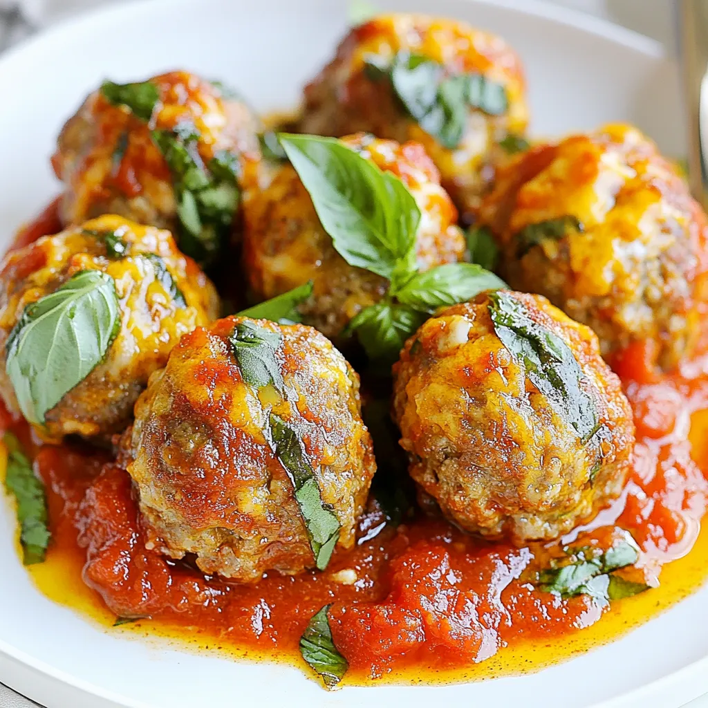 Serve the meatballs hot, garnished with fresh basil leaves for a burst of flavor.
