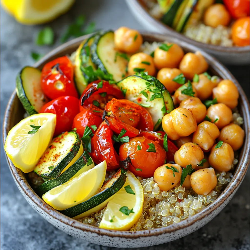 Once the sheet pan comes out of the oven, let it cool for a few minutes. In bowls, layer the cooked quinoa or couscous. Top it with the roasted chickpea and vegetable mix. For a pop of color and flavor, garnish with chopped fresh parsley. Serve with lemon wedges on the side. A fresh squeeze of lemon adds a nice touch!