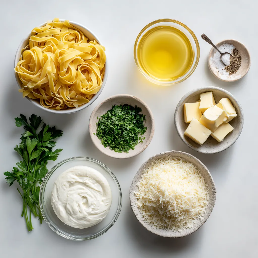 To make One-Pan Butter Parmesan Pasta, you need some great ingredients. Here’s what you will use: