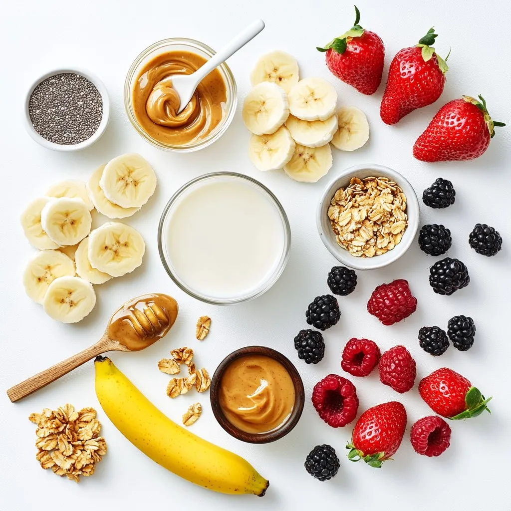 To make the Peanut Butter Banana Smoothie Bowl, you need simple, fresh ingredients. Start with ripe bananas; they should be sweet and ready to freeze. Freezing adds a creamy texture to your smoothie.