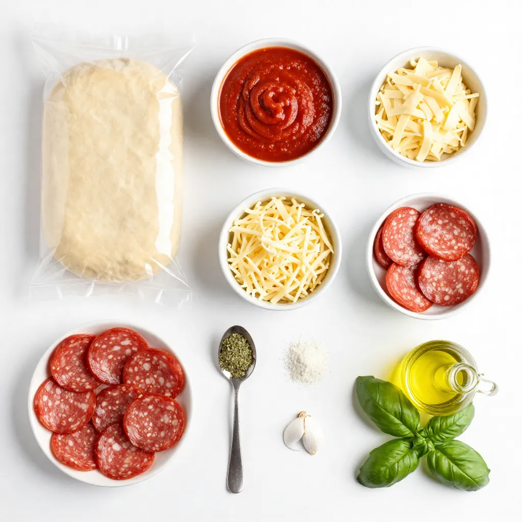 To make tasty pepperoni pizza pinwheels, gather these key ingredients:
