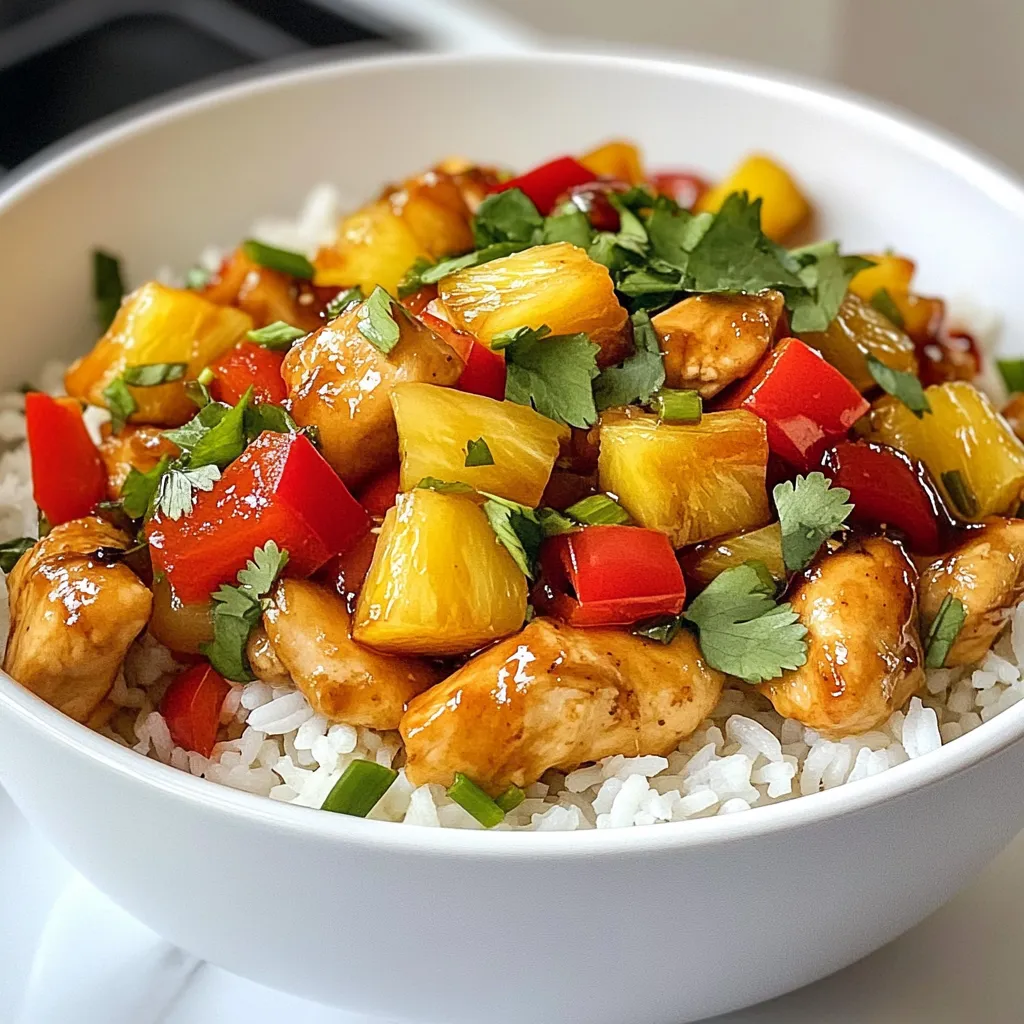 Enhancing flavor makes this dish shine. Use fresh ingredients like garlic and ginger for a bright taste. Sauté the onion and bell pepper until soft. This step adds depth to the meal. When you add soy sauce and honey, mix well. This combination brings a sweet and salty balance. Finally, toss in the fresh pineapple. It adds a tropical twist and brightens every bite.