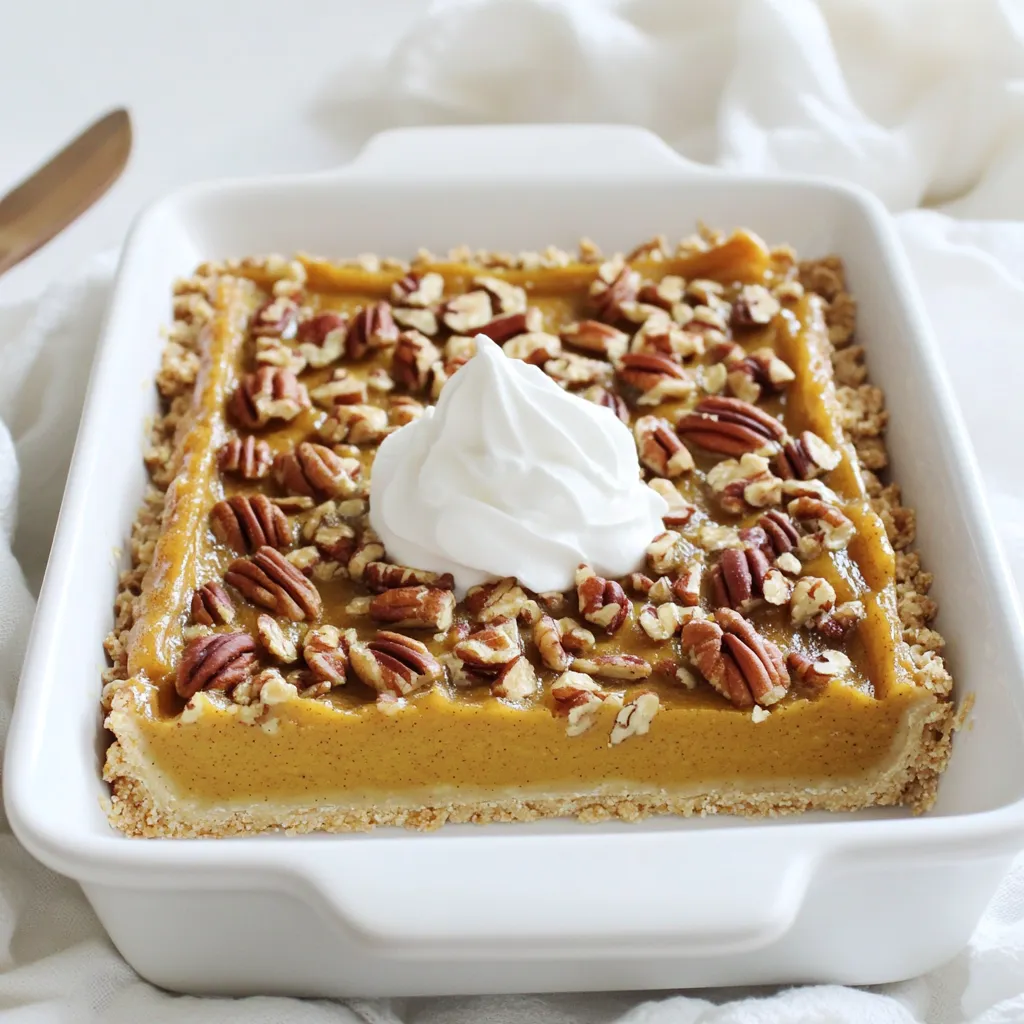 You can mix up your pumpkin pecan pie bars in fun ways. Try adding chocolate chips or a drizzle of caramel for a sweet twist. The chocolate adds richness, while the caramel brings a lovely gooeyness. You can also swap out the pecans for walnuts or almonds. Each nut gives a different flavor and crunch. If you’re feeling adventurous, add spices like cardamom or allspice to the filling. They will deepen the taste and add warmth to every bite.