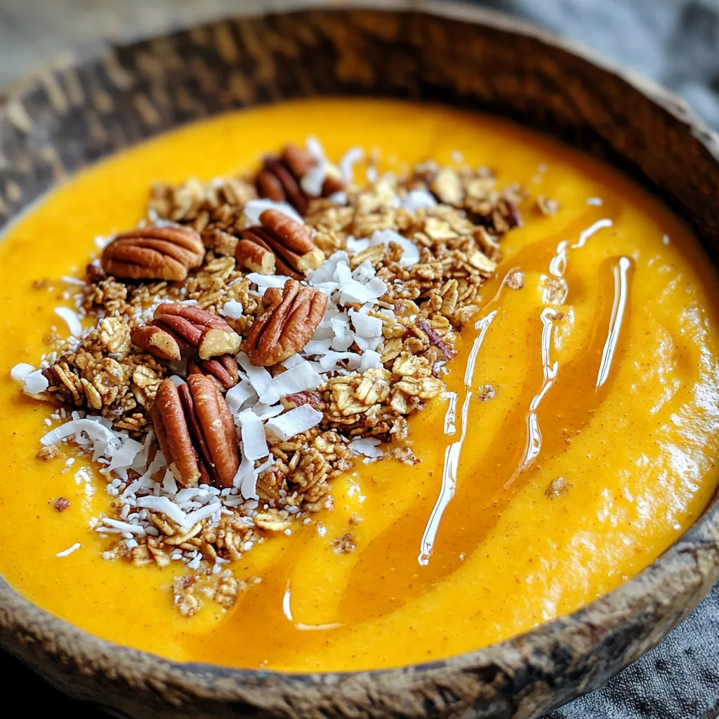The Pumpkin Pie Smoothie Bowl lasts about 2 days in the fridge. To keep it fresh, store the bowl in an airtight container. If you add toppings, store them separately. This keeps everything crispy and fresh.