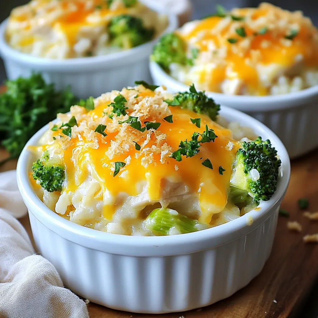 - 2 cups cooked rice (white or brown) - 2 cups cooked chicken, shredded or diced - 1 cup broccoli florets - 1 cup carrots, diced - 1 can (10.5 oz) cream of chicken soup - 1 cup chicken broth - 1 cup shredded cheddar cheese - 1 teaspoon garlic powder - 1 teaspoon onion powder - ½ teaspoon salt - ¼ teaspoon black pepper - ½ cup breadcrumbs - 2 tablespoons olive oil Gathering the right ingredients is key to making this delicious chicken rice casserole. You can use either white or brown rice, depending on what you like. Both work great in this dish. Shredded or diced chicken adds protein and flavor. You can use leftover chicken or rotisserie chicken to save time. Fresh vegetables, like broccoli and carrots, add color and crunch. They also make the dish healthier. The cream of chicken soup and chicken broth create a creamy base that ties everything together. Shredded cheddar cheese adds a comforting layer on top. For seasoning, garlic powder and onion powder are must-haves. They give your casserole that savory depth. Don't forget salt and black pepper to enhance all the flavors. The breadcrumbs mixed with olive oil make a crispy topping, adding texture. With these ingredients on hand, you are ready to create a meal that your whole family will enjoy! {{ingredient_image_1}} First, preheat your oven to 350°F (175°C). This step helps your casserole cook evenly. While the oven warms up, grab a 9x13-inch casserole dish. Grease it lightly to keep food from sticking. A quick spray of cooking oil works well. In a large mixing bowl, combine 2 cups of cooked rice, 2 cups of shredded chicken, 1 cup of broccoli florets, and 1 cup of diced carrots. This mix adds great flavor and nutrition. In another bowl, whisk together 1 can of cream of chicken soup, 1 cup of chicken broth, 1 teaspoon of garlic powder, 1 teaspoon of onion powder, ½ teaspoon of salt, and ¼ teaspoon of black pepper. Make sure it’s smooth. Pour this soup mixture over the rice and chicken mix. Stir until everything is well combined. Transfer your mixture into the greased casserole dish. Spread it out evenly. Now, sprinkle 1 cup of shredded cheddar cheese over the top. This cheese adds creaminess and richness. In a small bowl, mix ½ cup of breadcrumbs with 2 tablespoons of olive oil until coated. Evenly sprinkle this breadcrumb mix over the cheese layer. This will give a nice crunch. Place the casserole in your preheated oven. Bake for 25-30 minutes. You’ll know it’s done when the top is golden brown and bubbly. Keep an eye on it to avoid overbaking. To check doneness, insert a fork into the center. If it feels hot and bubbly, it’s ready! To boost flavor, you can add herbs and spices. Try thyme or rosemary for a fresh taste. You can also use leftover ingredients. If you have extra veggies or proteins, toss them in! This keeps waste down and makes the dish even better. For cooking chicken, I suggest using rotisserie chicken for ease. It saves time and adds great flavor. If you cook your own chicken, season it well and cook it until juicy. For perfect rice, always use the right water-to-rice ratio. Rinse the rice until the water runs clear to remove excess starch. Serve this casserole with a crisp side salad to balance the meal. A light vinaigrette pairs well with the rich casserole. For garnishing, sprinkle fresh parsley or chives on top. This adds color and freshness to the dish. Pro Tips Use Leftover Chicken: This recipe is perfect for using up leftover roast chicken or rotisserie chicken, making it a quick and easy meal option. Add More Veggies: Feel free to customize the vegetable mix by adding bell peppers, peas, or spinach for extra nutrition and flavor. Make It Ahead: Prepare the casserole ahead of time and refrigerate it, then bake it when you're ready to serve for a hassle-free dinner. Cheese Variations: Experiment with different types of cheese such as mozzarella or pepper jack for a unique twist on the flavor profile. {{image_2}} You can switch the proteins in this dish. Turkey works well if you have it. Tofu is great for a plant-based meal. Just make sure to cook it well before mixing it in. For dairy-free options, try using coconut milk instead of cream of chicken soup. For gluten-free, choose a gluten-free soup and broth. Both swaps taste great! Feel free to add other vegetables. Peas, bell peppers, or spinach can brighten the dish. You can use frozen veggies if fresh ones aren’t available. Just make sure to thaw and drain them first. Fresh produce adds a nice crunch, but frozen is quick and easy! To give your casserole a Southwestern twist, add black beans and corn. Spice it up with some chili powder too. For a Mediterranean touch, mix in sun-dried tomatoes and olives. You can also use feta cheese instead of cheddar. These flavors change the whole dish while keeping it familiar! To keep your chicken rice casserole fresh, store it in an airtight container. Ensure it cools down first. Place it in the fridge for up to three days. If you wish to save it longer, freeze it. Use freezer-safe containers or heavy-duty bags. It can last up to three months in the freezer. When you want to enjoy leftovers, reheating in the microwave is quick. Place a portion in a microwave-safe bowl. Heat it for one to two minutes, stirring halfway. If you prefer, you can also reheat in the oven. Preheat your oven to 350°F (175°C). Place the casserole in an oven-safe dish and cover it with foil. Bake for about 15-20 minutes or until hot throughout. In the fridge, your casserole will stay good for about three days. Always check for signs of spoilage. If you notice any off smells, discoloration, or mold, it's best to toss it. When stored properly, frozen casserole can last for three months without losing its taste. No, using uncooked rice is not a good idea. The rice needs to be cooked first. If you use uncooked rice, it will not absorb the flavors well and will stay hard. Always start with cooked rice for the best texture. You can prepare