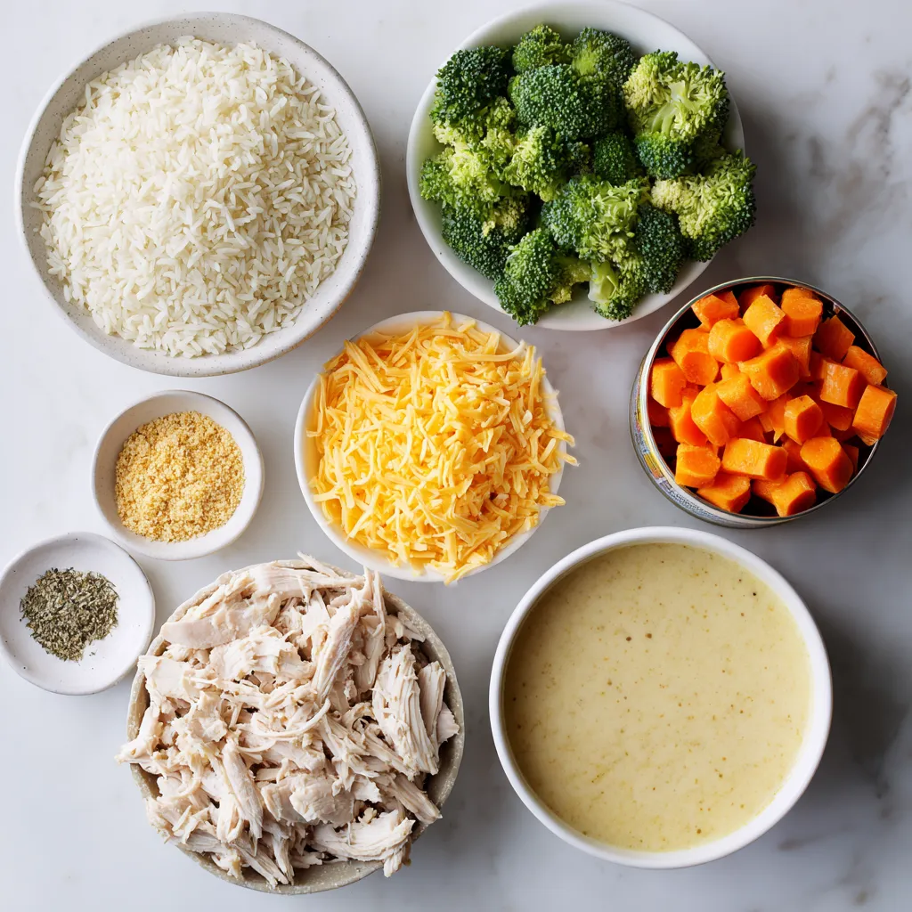 Fresh vegetables, like broccoli and carrots, add color and crunch. They also make the dish healthier. The cream of chicken soup and chicken broth create a creamy base that ties everything together. Shredded cheddar cheese adds a comforting layer on top.