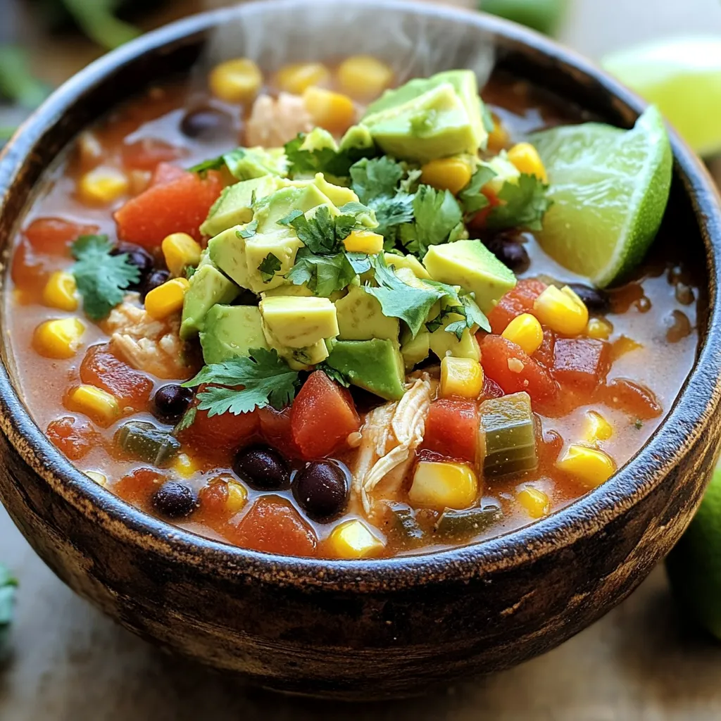 Serve the soup in deep bowls. Top each bowl with diced avocado and fresh cilantro. The colors make it look vibrant and appetizing. Place lime wedges on the side. A squeeze of lime brightens every bite.