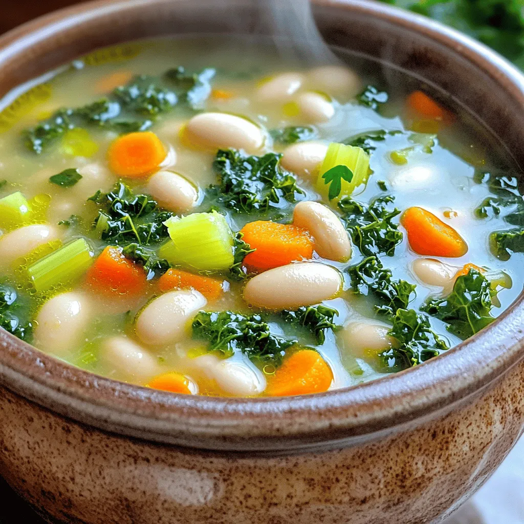 - 1 cup dried white beans (such as Great Northern or cannellini), rinsed and soaked overnight - 1 tablespoon olive oil - 1 medium onion, diced - 2 cloves garlic, minced - 3 carrots, sliced - 2 celery stalks, diced - 1 teaspoon dried thyme - 1 teaspoon dried rosemary - 4 cups vegetable broth - 1 (14-ounce) can diced tomatoes (with juice) - 1 bay leaf - 1 bunch kale, stems removed and chopped - Salt and pepper to taste - Juice of 1 lemon - Fresh parsley for garnish (optional) Gather the ingredients before you start. Using fresh veggies gives the soup great flavor. I love the way the dried white beans soak up all the tasty broth. They add a creamy texture that makes the soup hearty. You can use Great Northern or cannellini beans for this recipe. You’ll need some olive oil for cooking the onion and garlic. The onion adds sweetness, and garlic brings depth. Carrots and celery balance the soup with their crunch and flavor. Herbs like thyme and rosemary make it aromatic. Vegetable broth serves as the base and ties all the flavors together. Diced tomatoes add a nice tang and color. A bay leaf adds a subtle, earthy taste. Kale is the star green in this dish. It cooks down nicely and adds nutrition. Don’t forget the salt and pepper! They enhance the flavor. Lastly, a squeeze of lemon juice brightens everything up. If you want to get fancy, sprinkle fresh parsley on top for garnish. With these ingredients, you are set to create a warm and cozy bowl of soup. Enjoy every spoonful! To start, heat a skillet over medium heat. Add one tablespoon of olive oil. Once hot, throw in the diced onion. Sauté for about five minutes. The onion should turn translucent. Next, add two minced garlic cloves. Stir them in for about one minute. The smell will be amazing! Now, add three sliced carrots and two diced celery stalks. Cook these for another three to four minutes. You want them fragrant and slightly tender. This mix makes your soup taste great! After you sauté the veggies, transfer them to your slow cooker. Next, add one cup of soaked white beans. You can use Great Northern or cannellini beans. Sprinkle in one teaspoon each of dried thyme and dried rosemary for flavor. Now, pour in four cups of vegetable broth and one can of diced tomatoes with their juice. Don't forget to add one bay leaf. Stir everything well, so the flavors mix nicely. You can cook this soup on low or high. If you choose low, it will take about six to seven hours. On high, it will only take three to four hours. To know when the soup is ready, check if the beans are tender. The soup should smell rich and inviting. About thirty minutes before serving, stir in one bunch of chopped kale. Season it with salt, pepper, and the juice of one lemon. Remove the bay leaf before serving to make it perfect! To make your soup even better, try adding fresh herbs. Fresh thyme or basil adds a lovely touch. You can also sprinkle in a pinch of red pepper flakes for heat. Serve the soup with crusty bread or a fresh salad for a full meal. If you want a thicker soup, mash some beans against the side of the pot. This helps create a creamier texture. For garnishes, consider using a dollop of sour cream or a sprinkle of cheese. Fresh parsley adds a bright look too. If you're short on time, use canned white beans instead of dried ones. Just rinse and add them in the last hour of cooking. If you’re missing any veggies, swap them out for what you have. Zucchini or spinach works well. {{image_2}} You can use many types of beans in this soup. Great Northern or cannellini beans are perfect, but you can try others too. Navy beans work well for a creamy texture. Black beans add a rich color and flavor. Chickpeas can also be a fun twist. Each bean brings its own taste and texture to the dish. The base of the soup is solid, but you can change it up. Adding spinach or Swiss chard can boost vitamins and color. Zucchini or bell peppers bring a nice crunch. Sweet potatoes or potatoes add heartiness. Feel free to mix in your favorite veggies for variety. If you want to add protein, there are many options. For meat lovers, diced chicken or sausage works great. Just add it with the other ingredients. If you prefer plant-based protein, try adding lentils or tofu. Both options make the soup filling and healthy. To store leftovers, let the soup cool first. Use airtight containers to keep it fresh. Place the soup in the refrigerator. It will stay good for about 3 to 5 days. Always label your containers with the date. This way, you won’t forget how long it’s been. Freezing this soup is a great option. First, let it cool completely. Then, pour the soup into freezer-safe bags or containers. Leave some space at the top for expansion. Make sure to remove as much air as possible. This helps prevent freezer burn. The soup can last in the freezer for up to 3 months. To reheat, take out the soup from the fridge or freezer. If it’s frozen, let it thaw in the fridge overnight. Reheat on the stove over low heat. Stir often to avoid sticking. You can also use the microwave. Heat in short bursts, stirring in between. Make sure it’s hot all the way through before serving. Enjoy your warm bowl of soup! Soaking dried beans helps them cook faster and become tender. To soak beans, follow these steps: - Rinse the beans under cold water to remove dirt. - Place the beans in a bowl and cover them with water. - Let them soak overnight or for at least 8 hours. - Drain and rinse the beans before using them in your soup. Soaking makes the beans easier to digest, too! Yes, you can make this soup on the stovetop. Here’s how: - Sauté the onions, garlic, carrots, and celery in a pot. - Add the soaked beans, herbs, broth, and tomatoes. - Bring to a boil, then reduce heat to low. - Let it simmer for about 1.5 to 2 hours, or until the beans are tender. - Stir in the kale towards the end, just like in the slow cooker recipe. This method speeds up the cooking time and keeps all those great flavors. This 