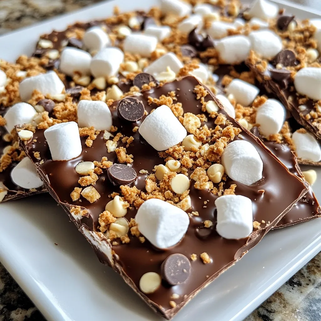 A delightful treat combining milk and dark chocolate with graham crackers and marshmallows.