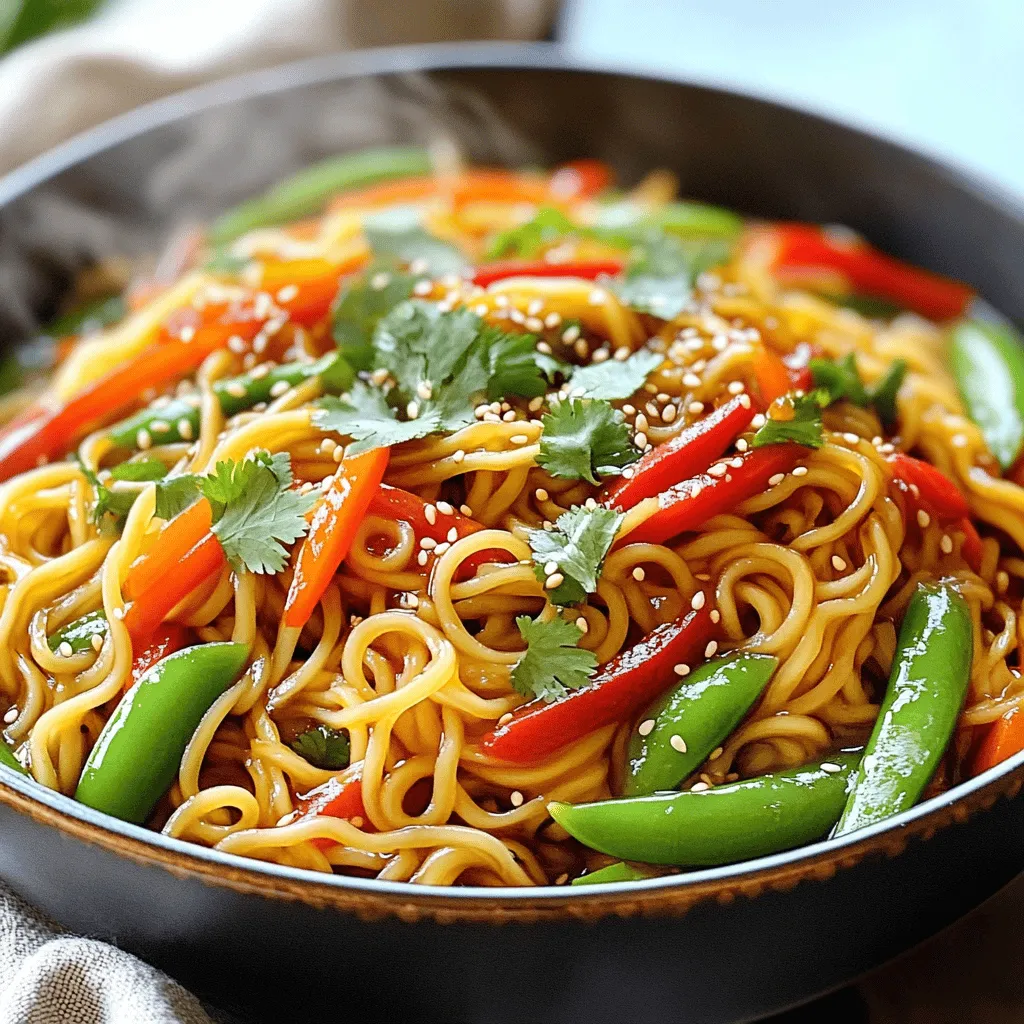 Crispy veggies make the dish shine. Stir-fry your garlic and ginger in hot oil for one to two minutes. Don’t let them burn. Next, add your vegetables. Cook them just until they are crisp-tender. This keeps them bright and crunchy. Toss the noodles gently to prevent them from breaking apart.