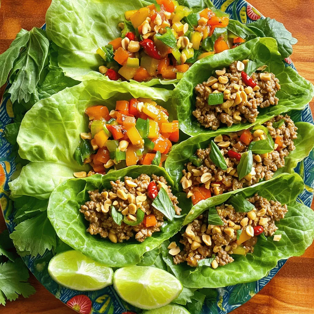 Serve the wraps on a large, colorful platter. Place the turkey mix in the center with lettuce leaves around it. This way, guests can create their own wraps. For garnishing, sprinkle chopped peanuts on top. You can also add lime wedges for a fresh touch. These small details make your dish look even better.
