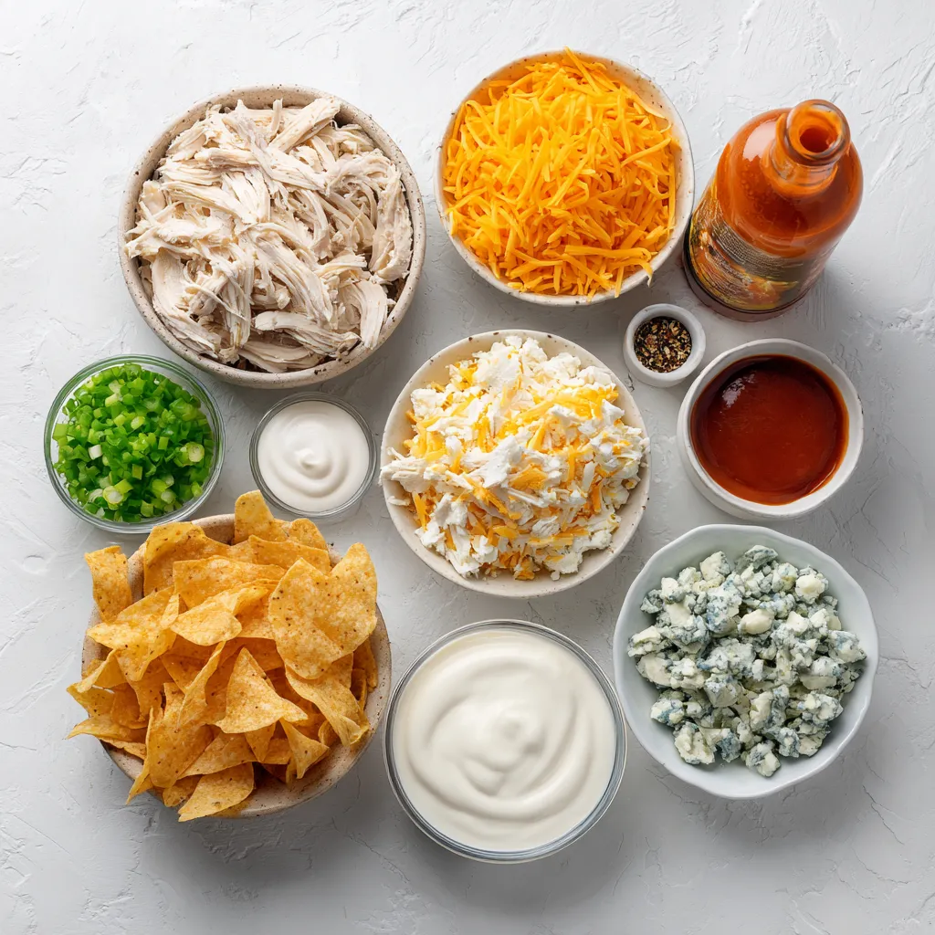 For the best buffalo chicken dip, you need key ingredients. Here’s what you will need: