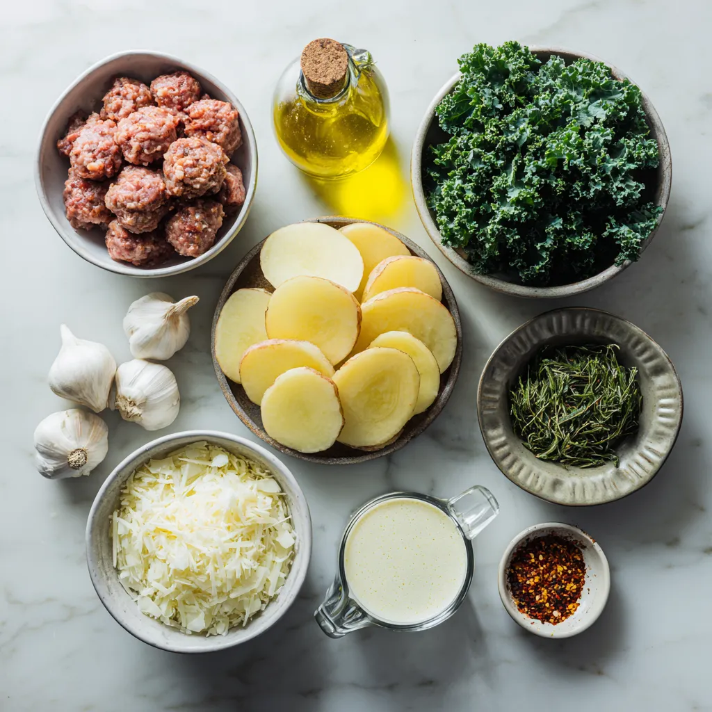 To make Zuppa Toscana, you need fresh, simple ingredients. Here’s what you’ll need: